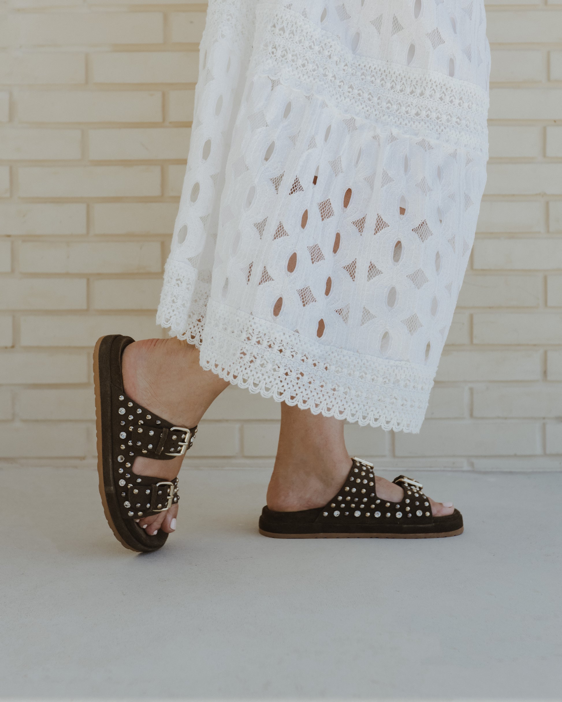 Expertly crafted and designed for durability, these sandals feature a rich suede exterior with shimmering metallic details, as well as a comfortable natural suede insole and leather lining. The neolite sole provides traction and stability, making these sandals perfect for any occasion.