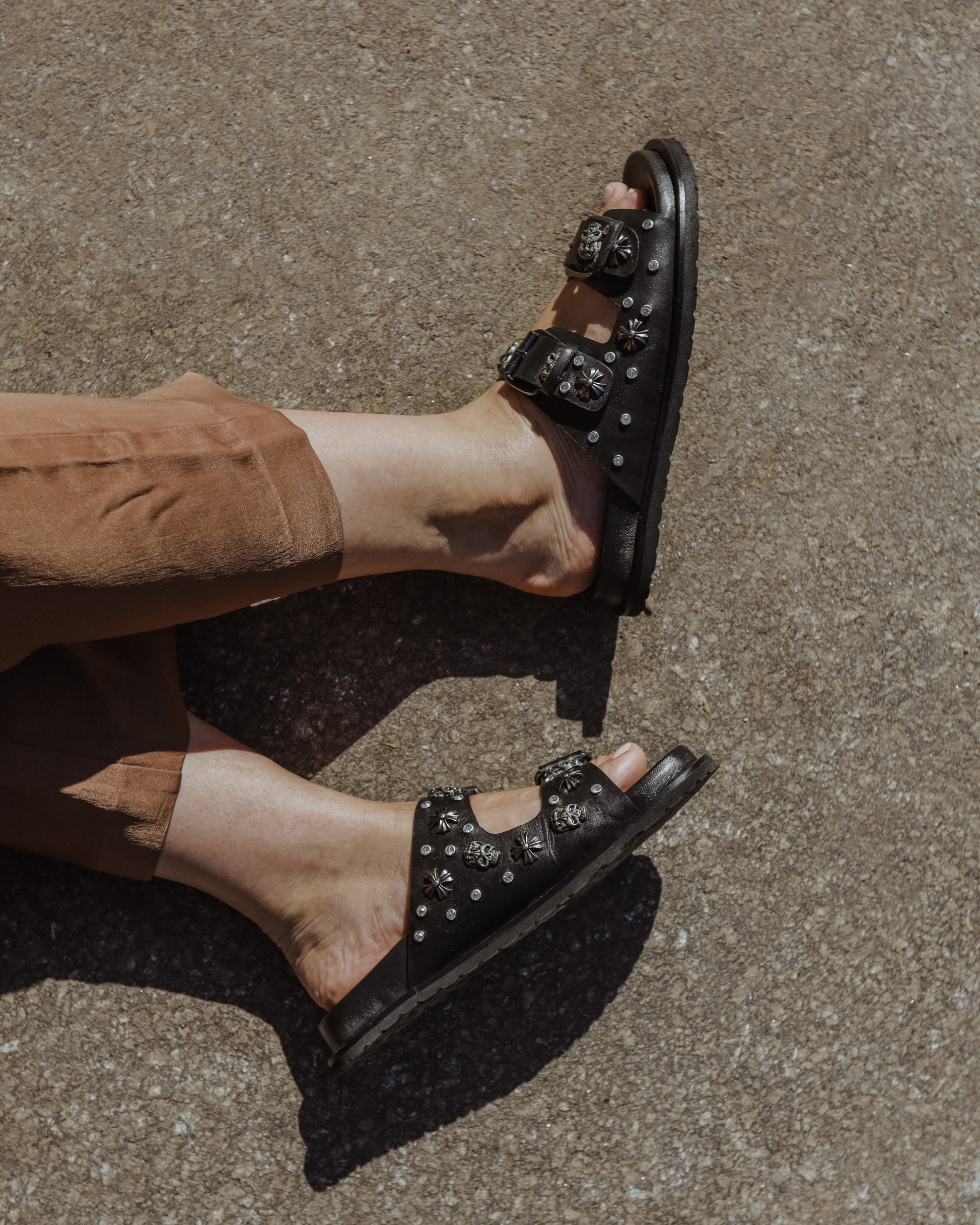 Expertly crafted from top-quality materials, these sandals are designed for both style and durability. The natural leather exterior and interior provide a comfortable fit, while the Neolite sole ensures long-lasting wear. With a stylish design featuring appliqués and rhinestones, these sandals are a must-have for any fashion-forward wardrobe. Experience the luxury of natural leather with the sleek and sophisticated KS.24.123 model in black.